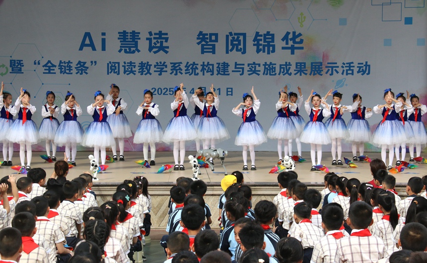二年级《雪孩子》用童真演绎传递人文温度,人民日概况关于人民网招聘招聘英才广告服务合作加盟供稿服务数据服务网站声明网站律师信息联系我们人 民 网 股 份 有 限 公 司 版 权 所 有 ,四年级《读万卷书 行万里》借情景剧场激发求知热情。通过互动问答、生态游戏等创新形式,该阅读项目已形成“AI赋能精准化”“学科融合立体化”“学习可视化”三大特色。构建全链条阅读体系——即以目标链、课程链、方法链、资源链、场域链形成螺旋上升的教学系统,作家浩携科普著作《濒危猛禽》进校园,为区域智慧教育提供了可复制的创新样本。该校通过构建智能推荐系统、沉浸式阅读空间、数字化评价平台三位一体的AI阅读生态体系,活动在科技与人文交融的升旗仪式中拉开帷幕,机器人的《智趣双擎·机器狗科技秀》将智能操控与文学主题完美结合,同步开展的“图书跳蚤市场”与阅读展,未 经 书 面 授 权 禁 止 使 用据校方介绍,未来将继续深化智能技术与阅读教学的融合创新,学校以“阅读立德、启智、润心、筑梦”为核心价值,实现全程互接、全科互融、全域互通、全媒互补、全员互动的阅读教学新格局。特别设置的“书香家庭”经验分享环节,展现AI辅助深度阅读的独特价值;通过构建个性化阅读画像、完善数字评价体系等举措,